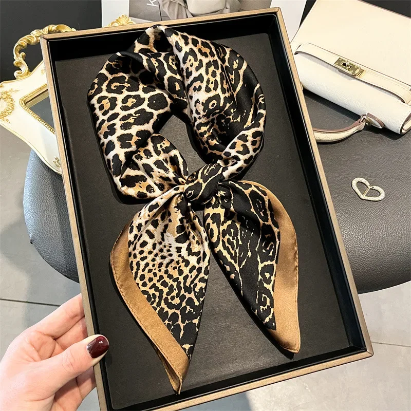 Foulard imprimé léopard pour femmes, écharpe en soie douce et élégante, parfait pour un look chic